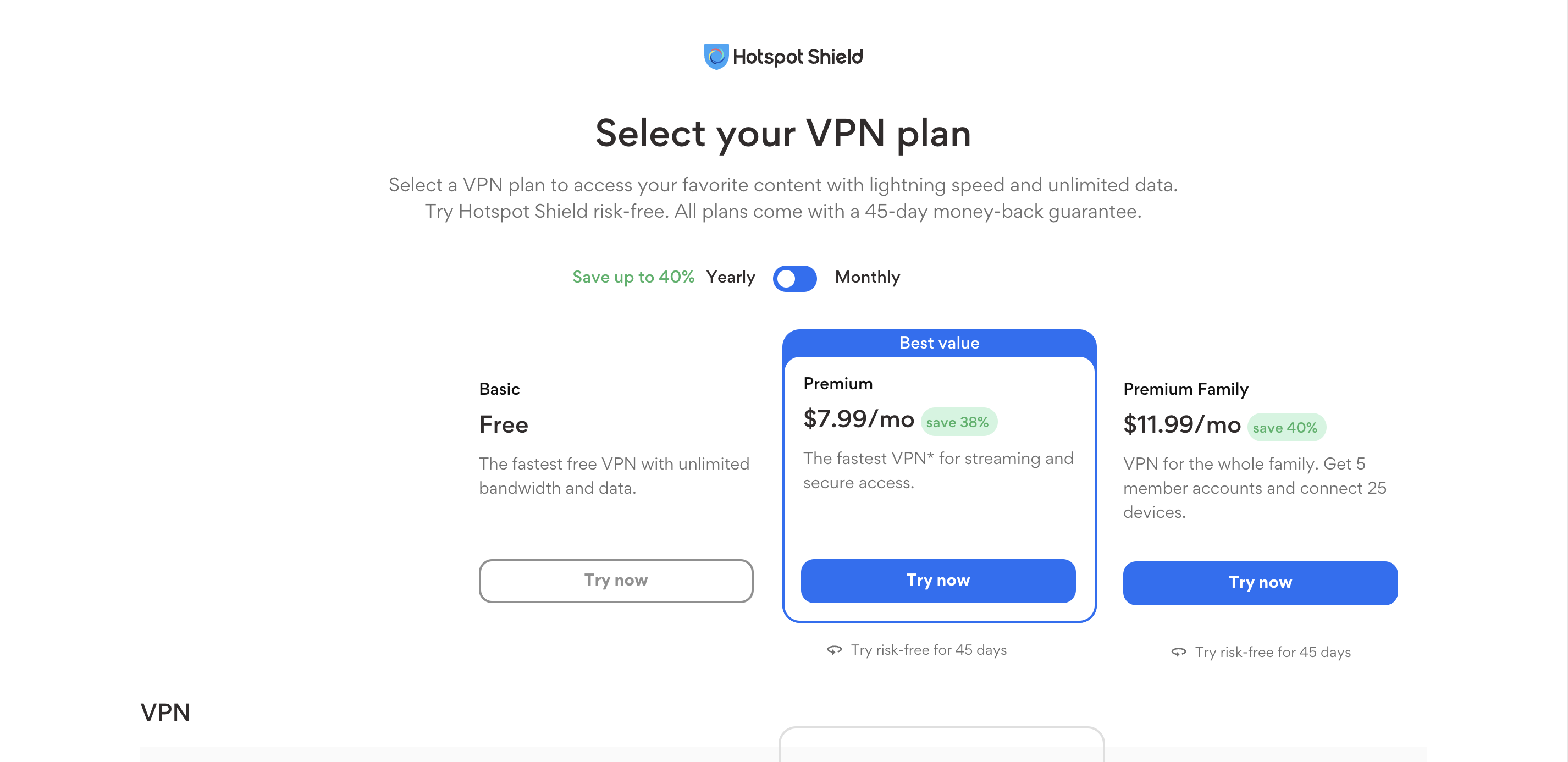 Hotspot Shield VPN currently offers plans: