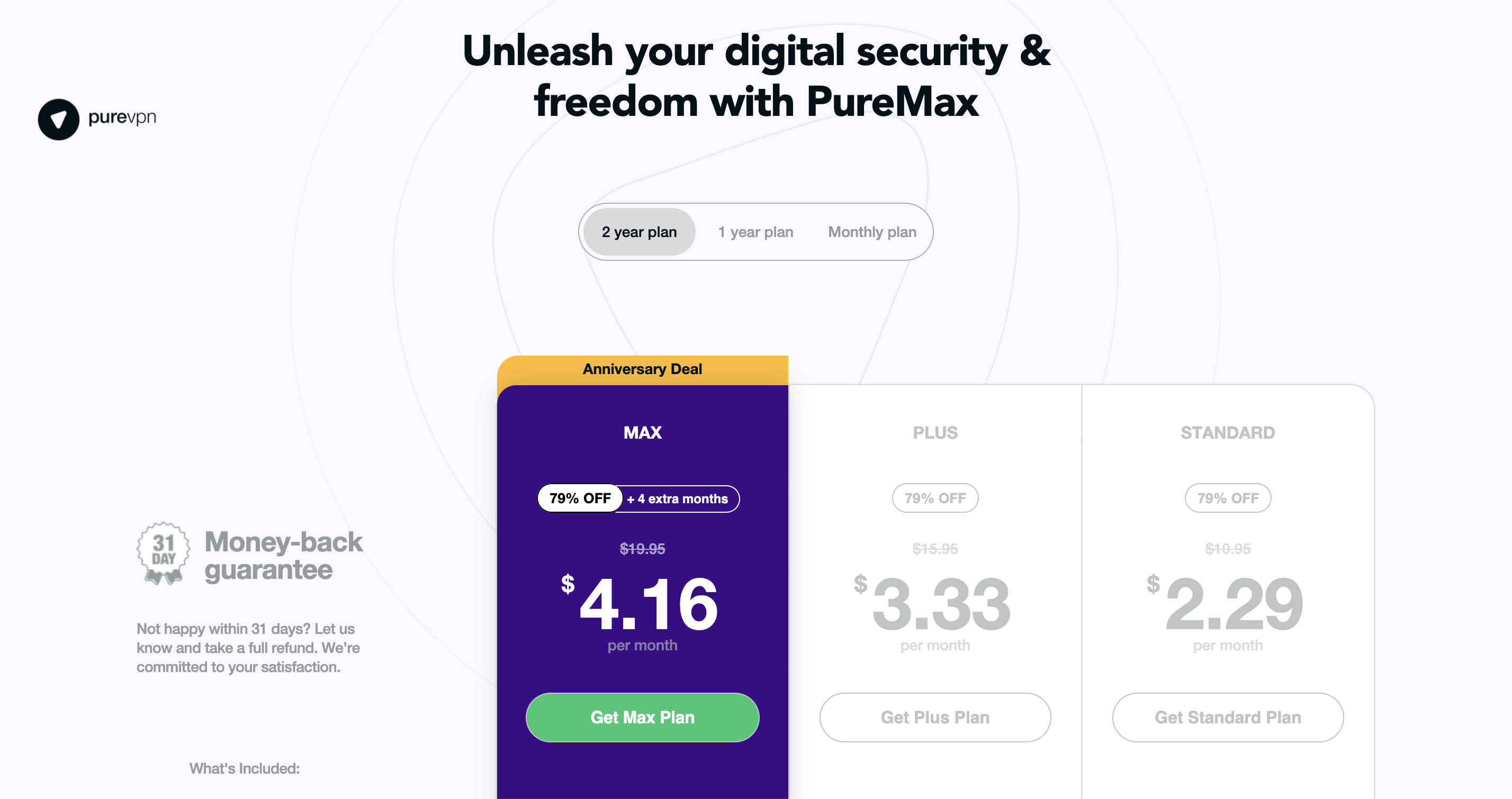 PureVPN offers a range of long-term plans at incredibly affordable prices, making it an excellent choice for those looking to save money. Here are the available options: